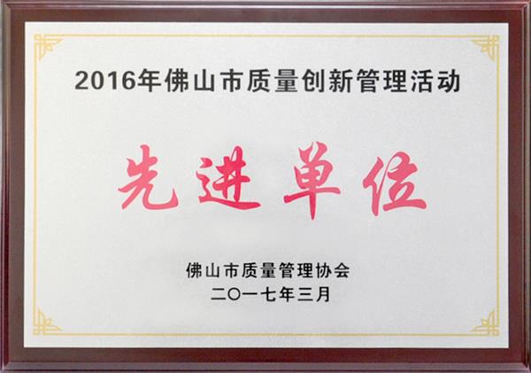 我司被評為“2016年佛山市質量創新管理活動先進單位”